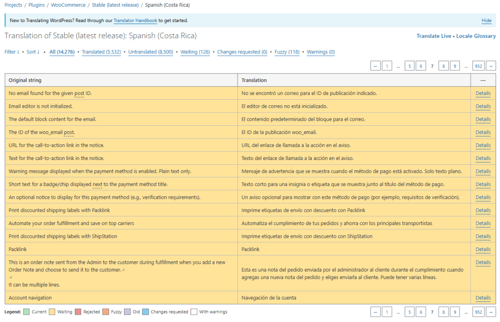 En esta sexta etapa de mi proyecto continué avanzando en la traducción de cadenas dentro de WooCommerce para es_CR (Español de Costa Rica). Después de haber enfrentado algunos retos en etapas anteriores, en esta fase seguí trabajando con más seguridad y con un criterio más claro para traducir frases relacionadas con pagos, confirmaciones de pedido, configuraciones del sistema y mensajes visibles para el usuario.
