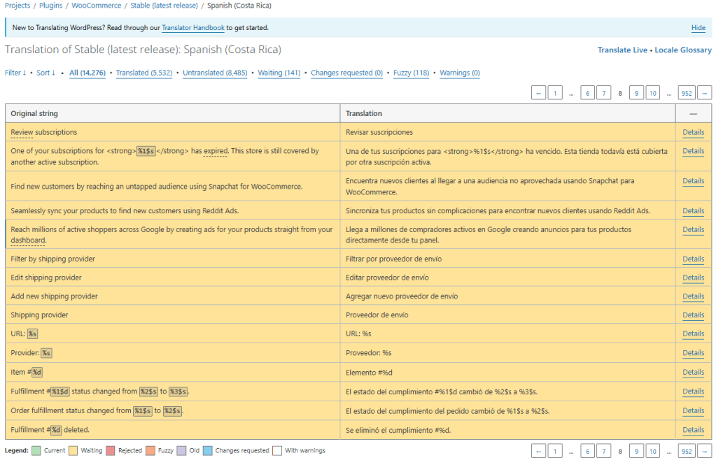 Durante mi contribución trabajé con cadenas relacionadas con distintos apartados de WooCommerce, entre ellos métodos de pago, instrucciones de checkout, correos automáticos, configuraciones internas, navegación de cuenta, envíos y mensajes mostrados al usuario dentro de la tienda. Esto me permitió participar de forma activa en la mejora de la experiencia de uso en español de Costa Rica, aportando sugerencias de traducción en un proyecto ampliamente utilizado dentro del ecosistema de WordPress.